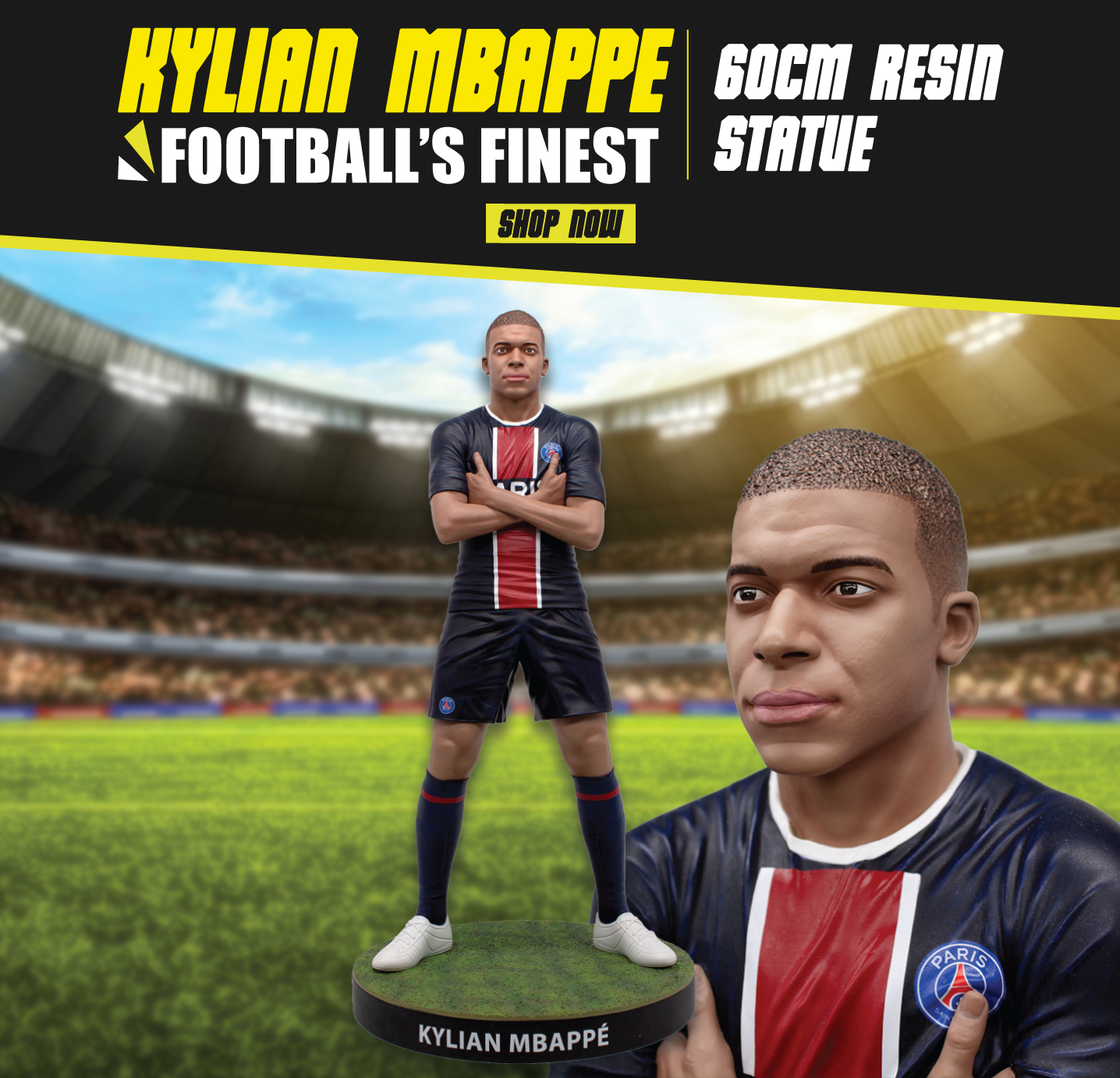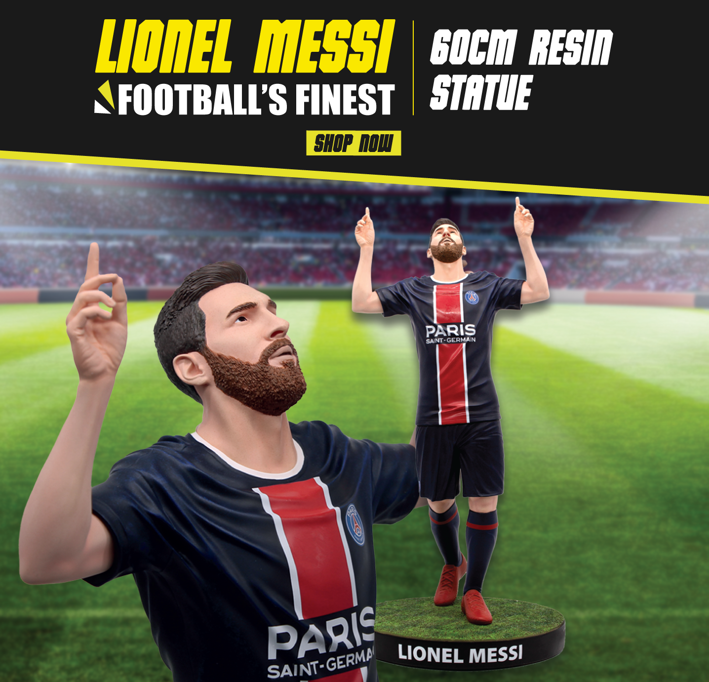 Our statues stand at 60cm tall and are made out of the highest quality resin to commemorate the top football players in the world.
