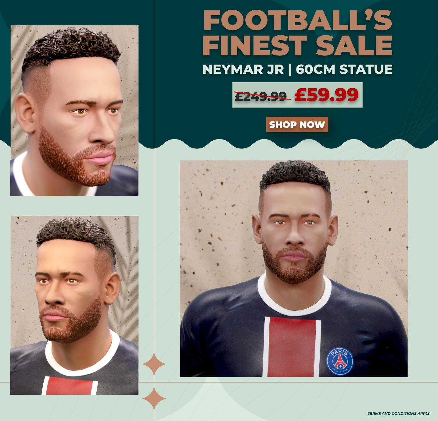 Our statues stand at 60cm tall and are made out of the highest quality resin to commemorate the top football players in the world.